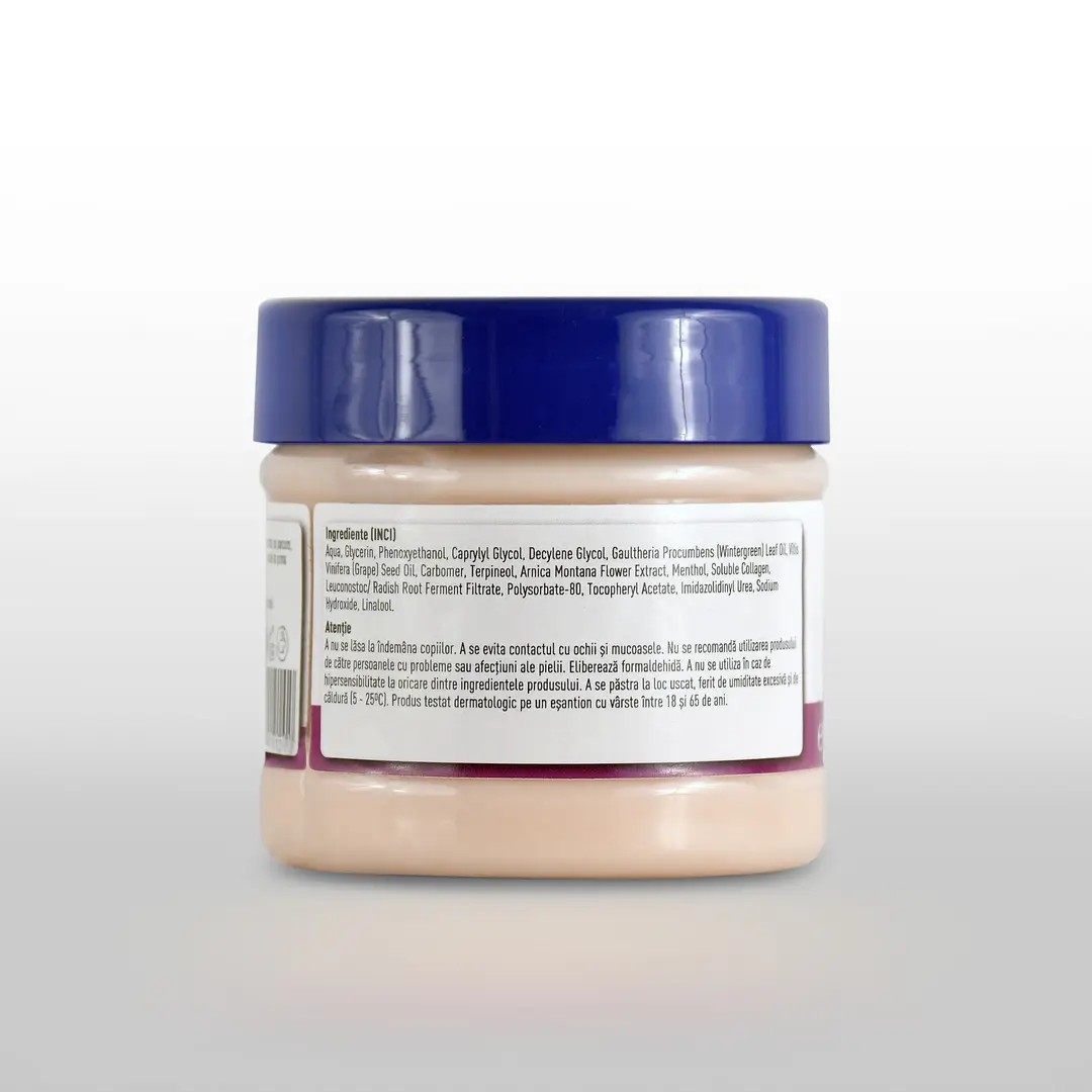Aqua, Glycerin, Phenoxyethanol, Caprylyl Glycol, Decylene Glycol, Gaultheria Procumbens (Wintergreen) Leaf Oil, Vitis Vinifera (Grape) Seed Oil, Carbomer, Terpineol, Arnica Montana Flower Extract, Menthol, Soluble Collagen, Leuconostoc/ Radish Root Ferment Filtrate, Polysorbate-80, Tocopheryl Acetate, Imidazolidinyl Urea, Sodium Hydroxide, Linalool.