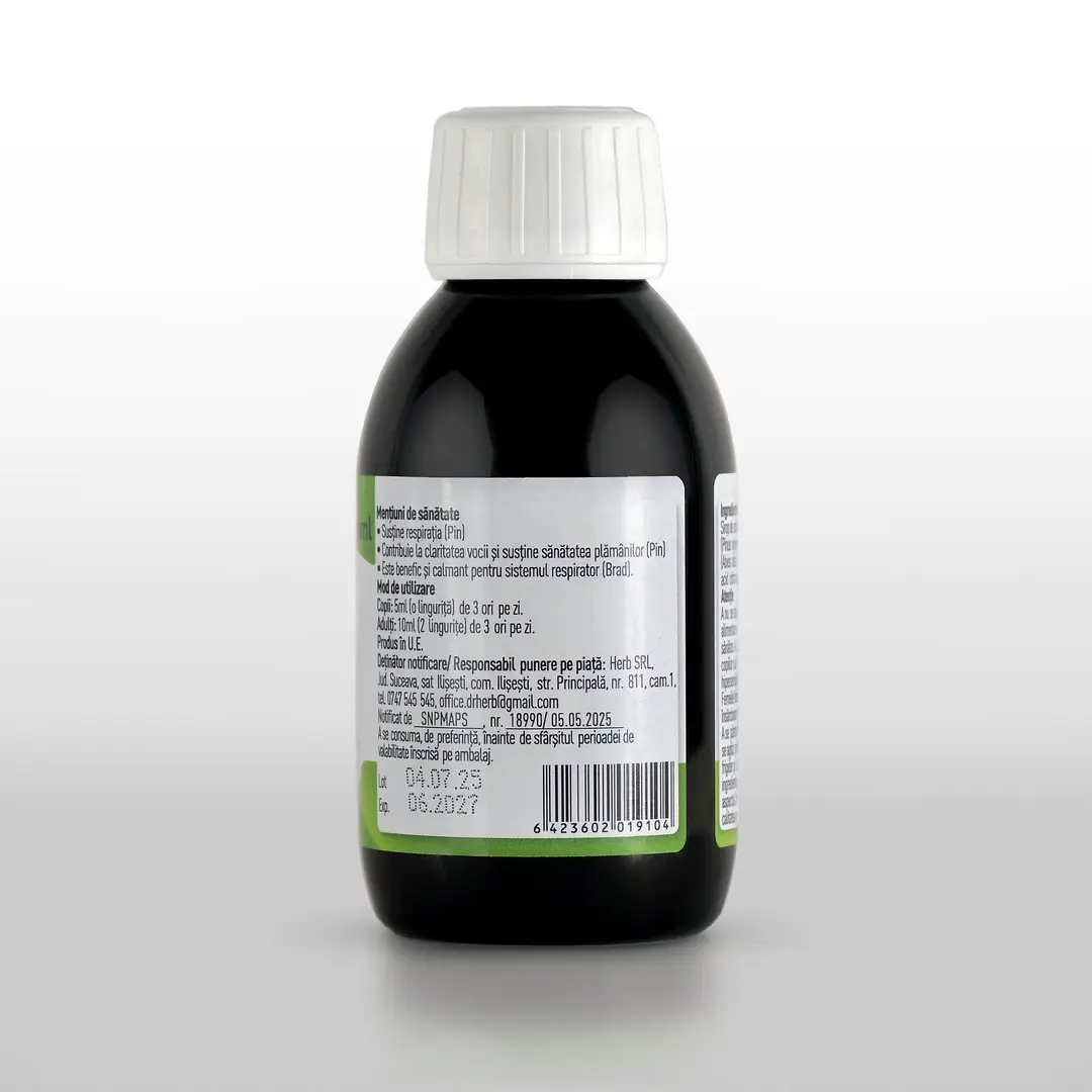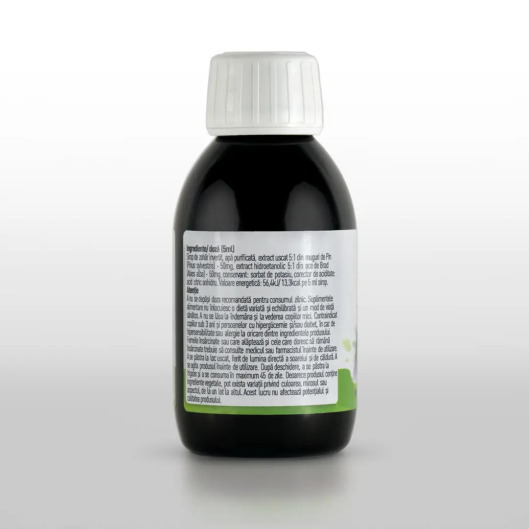 Cantitate/doză (5ml): Extract de Pin 50mg, Extract de Brad 50mg. Valoare energetică: 80kJ/19kcal pe 5ml sirop